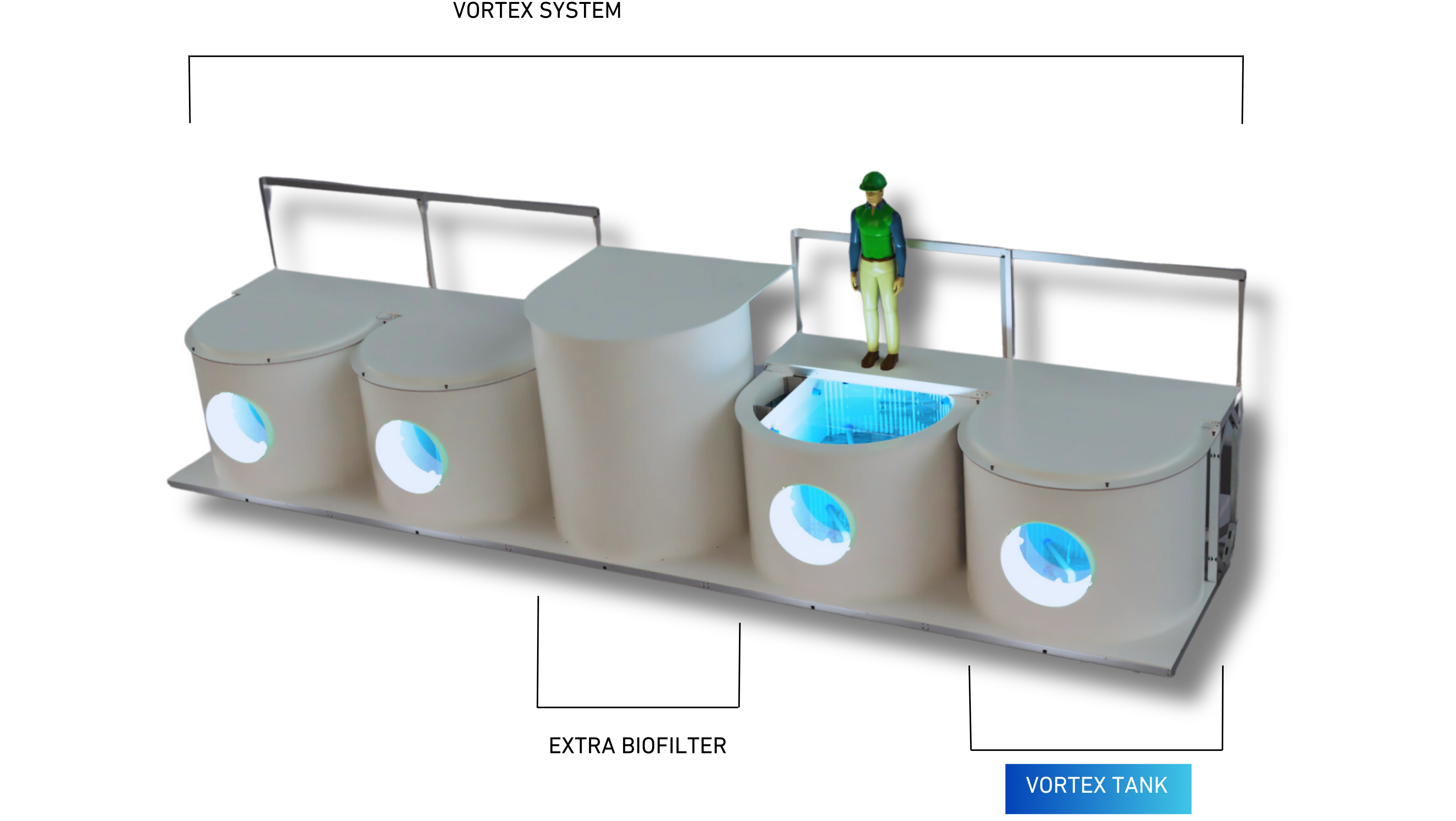 Jeder Vortex-Tank kommt mit integrierter Biofiltration, Belüftung und Feststofffilterung.